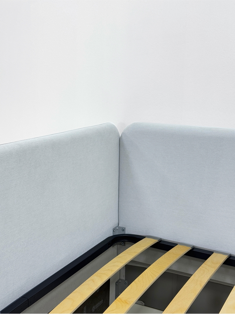 Кровать с универсальной малой спинкой, которую можно установить справа или слева.