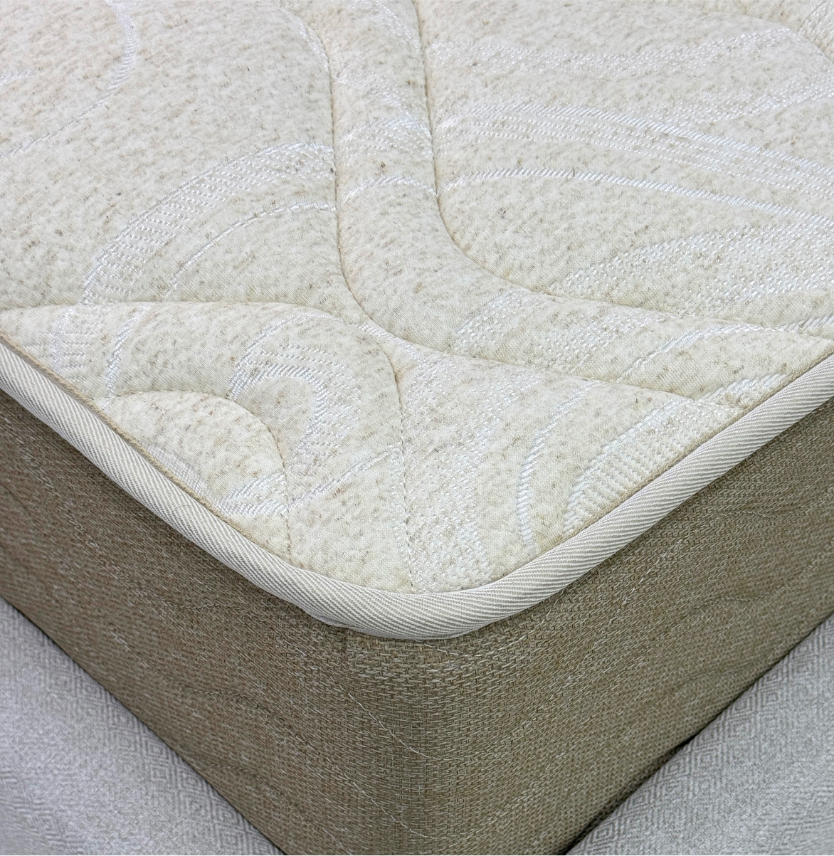 Термовойлок - Нетканый материал, состоящий из 45% льна, 45% джута и 10% синтетических волокон, получаемый путем спекания по специальной технологии. Материал высокой плотности. Используется для защиты мягких настилов матраса от воздействия пружинного блока, равномерно распределяет нагрузку по всему матрасу, придает дополнительную жесткость, упругость и долговечность.